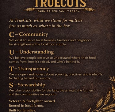 By choosing TrueCuts, you’re not just buying meat—you’re joining a mission rooted in service, stewardship, and a dedication to making a real difference. We’re here to bridge the gap between the farm and your family table, one meal at a time.
