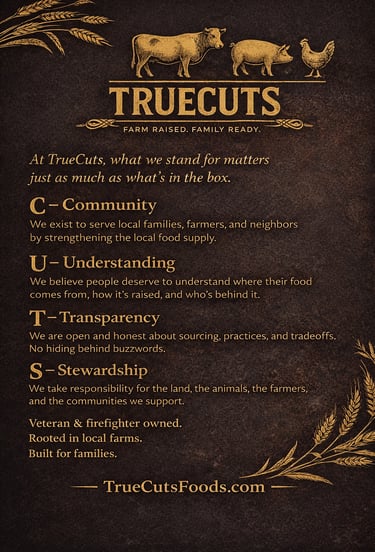 TrueCuts began with a simple belief: food should mean more than a price tag. Families have grown distant from the farms that feed them, and small producers continue to be pushed aside by industrial systems.